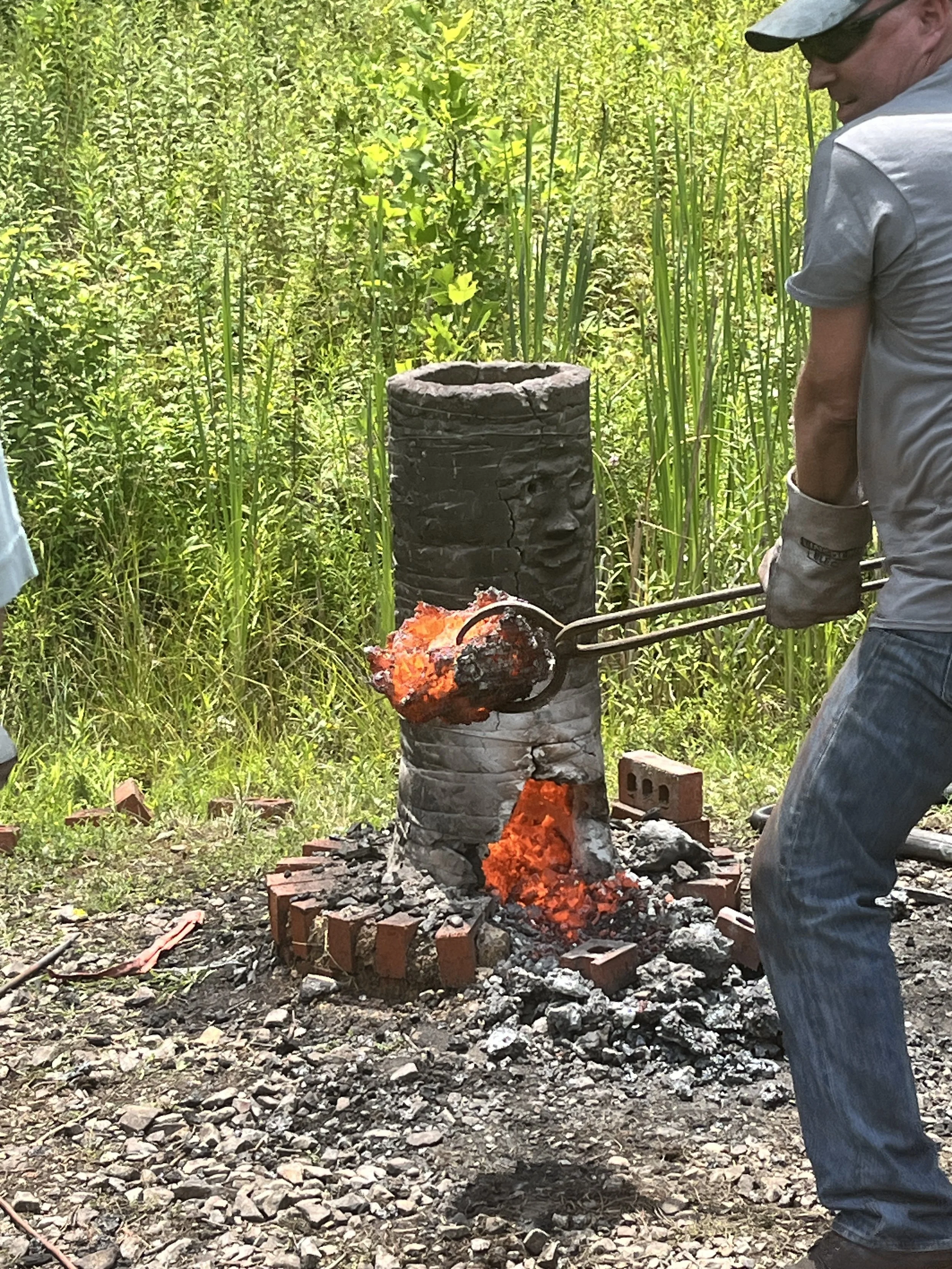 One of the blacksmithing workshops this month was an iron smelting class — they constructed homemade furnaces using clay, then smelted iron blooms from red iron oxide and charcoal. I watched them extract and hammer/cut several blooms; the glimpses I got of the process was crazy! It’s kind of the metal version of rocket kilns and processing wild clay.