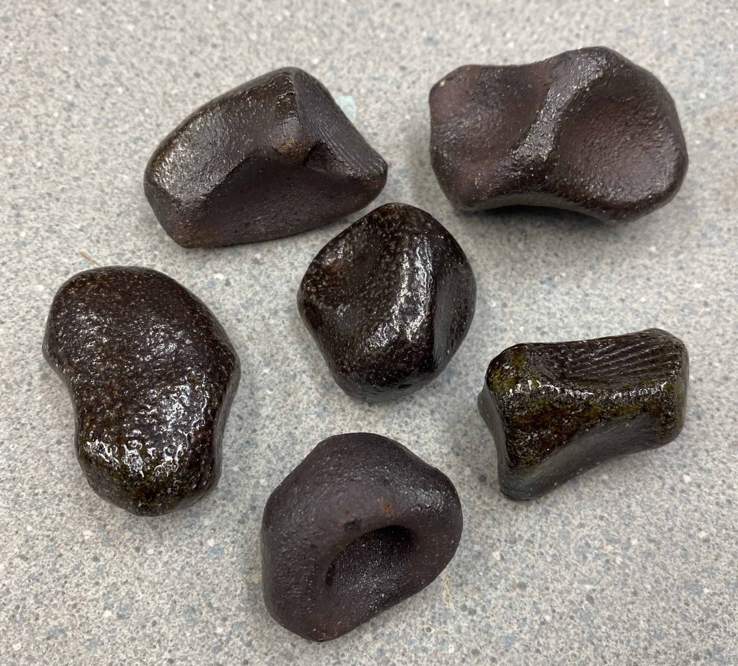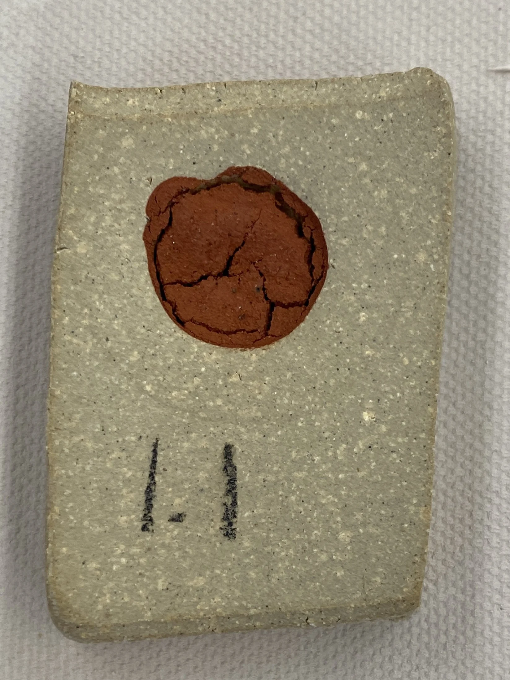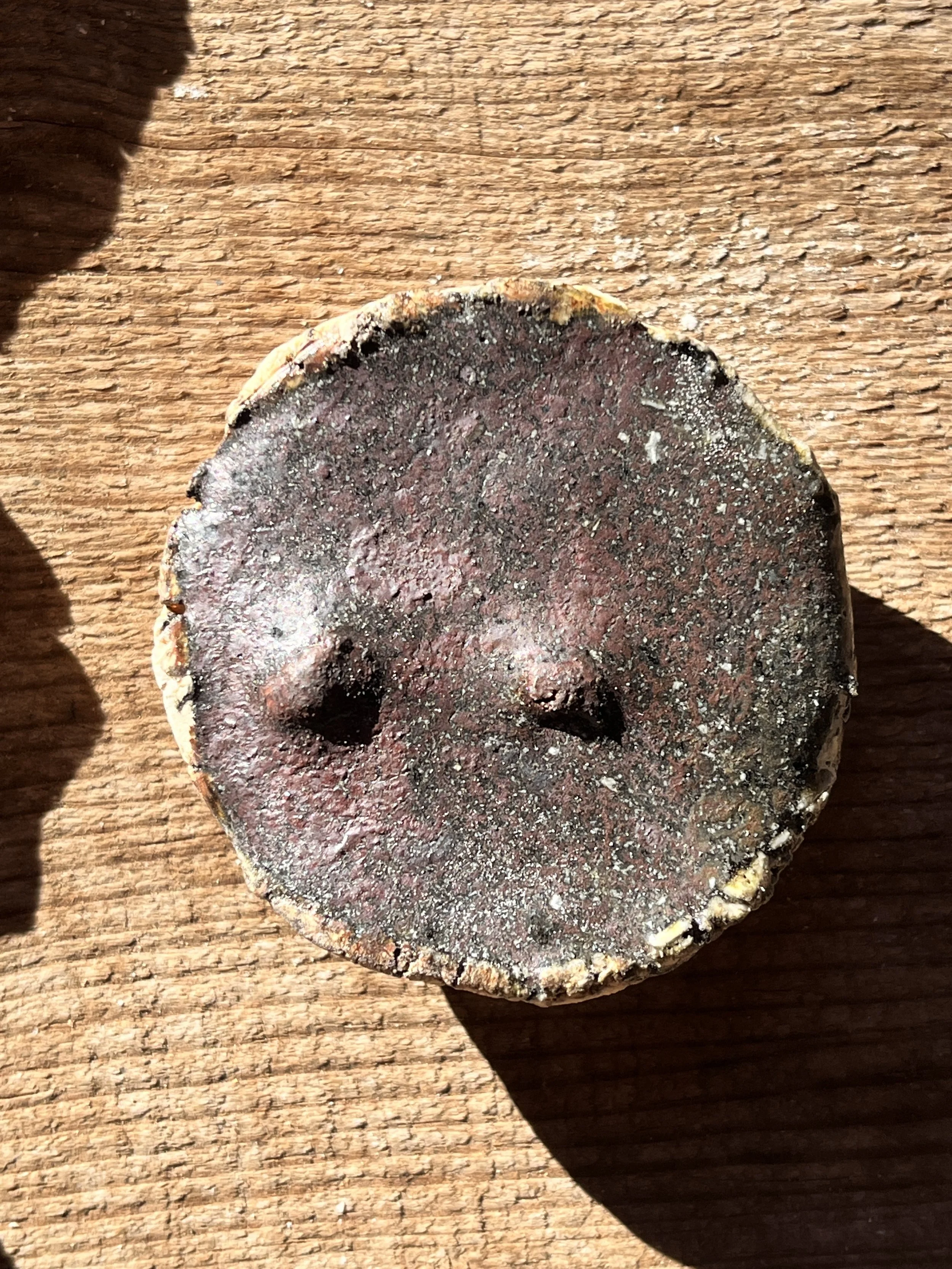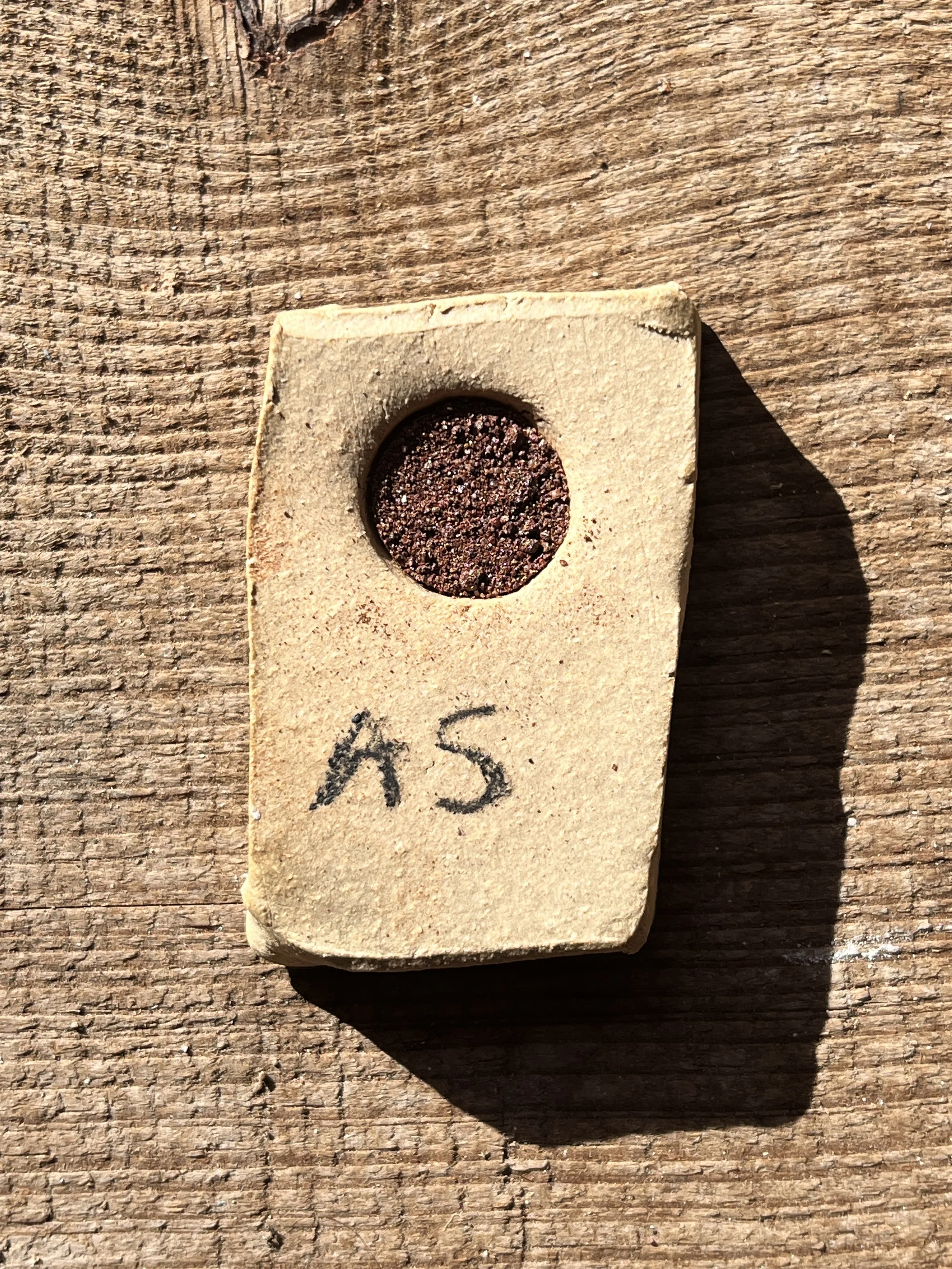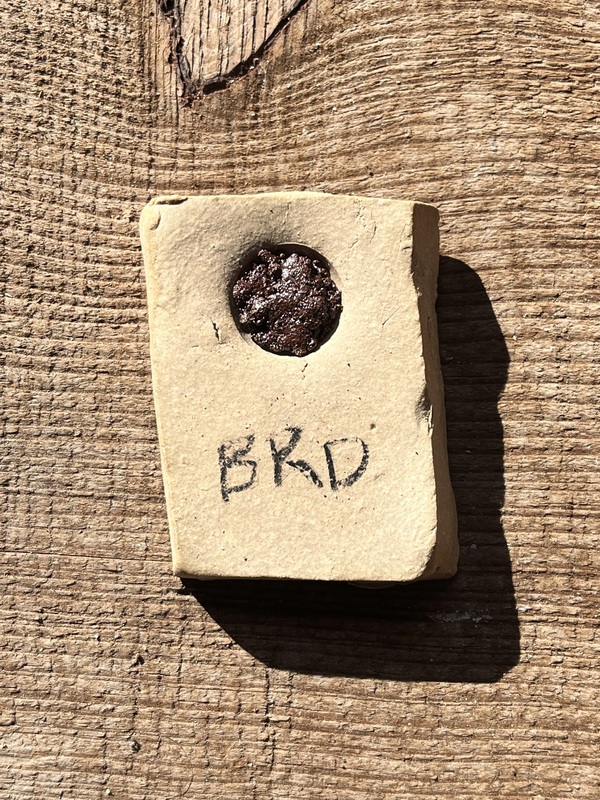 starts to melt at ^6, melts into a purple-y black glaze at ^10… need to test at lower temps
